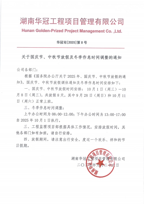 2025年國(guó)慶節(jié)、中秋節(jié)放假及冬季作息時(shí)間調(diào)整的通知